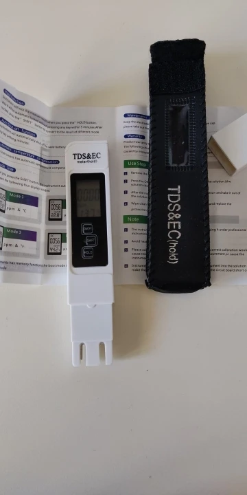Очень быстрая доставка. Как в описании. Размеры выглядят точно. Я не могу сравнить со второй единицей, но повторные меры дают те же результаты. Я использую его, чтобы проверить свои Фильтры обратного осмоса, поэтому я не беспокоюсь о точной калибровке (просто нужно увидеть разницу между водопроводной водой и фильтрованной). Аккумулятор включен (уже установлен). Я возвращаю товар и продавцу.
