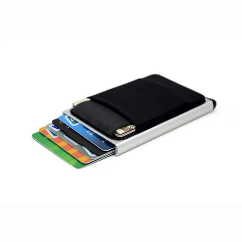 Тонкий алюминиевый кошелек с эластичной задней крышкой, 2 шт., держатель для удостоверения личности и кредитных карт, мини-кошелек, автоматический выдвижной чехол для банковских карт