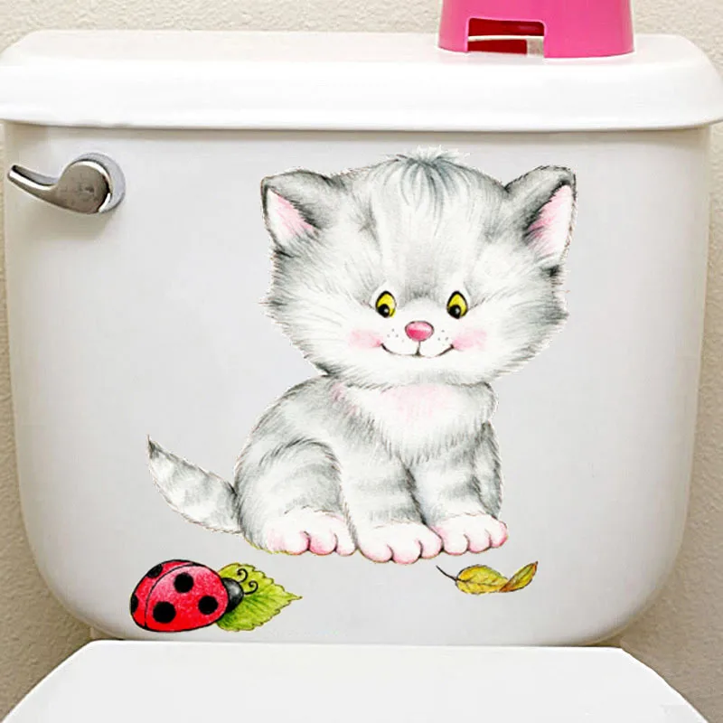 Стикеры с милым котом, декоративные Стикеры для туалета с кошками, ...
