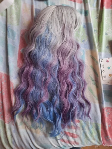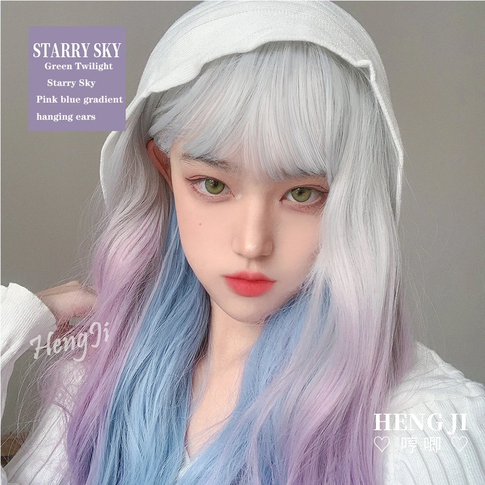 Длинная кудрявая розово-синяя челка HOUYAN с зажимом маленький пари...