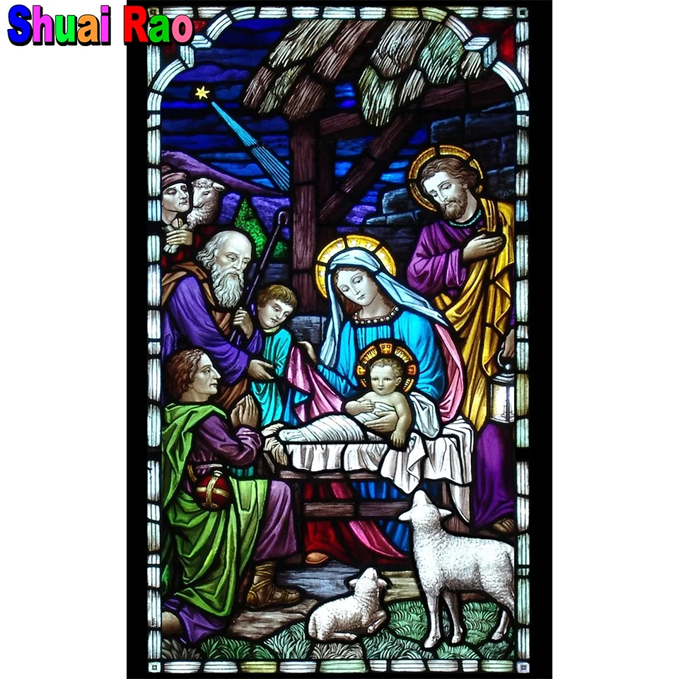 Иисус рождения религиозных 5d Сделай Сам алмазная живопись камни в форме ромба круглый алмазная, мозаичная, религиозная Алмазная вышивка подарок христианский Декор
