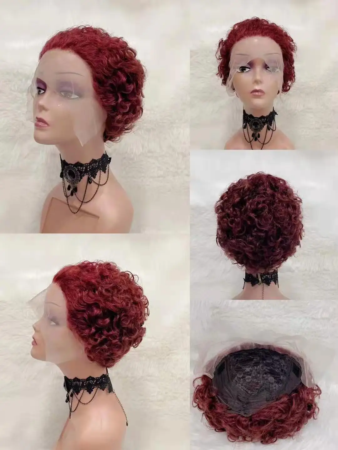Короткие вьющиеся парики из человеческих волос 99J, надувной парик ...