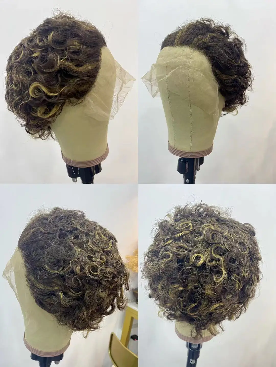 Упругие кудрявые короткие парики на шнуровке, подсвечивающие парики...