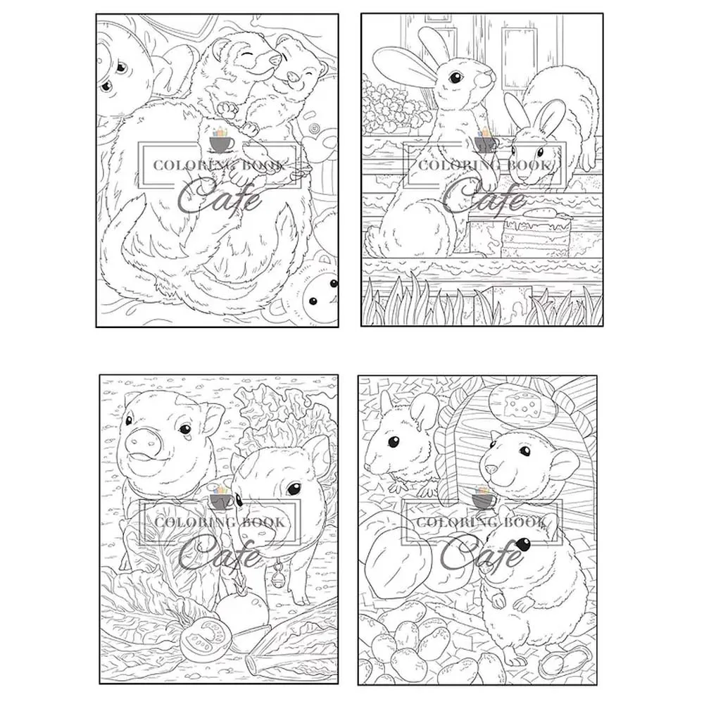Раскраска "жизнь домашних животных": забавные и очаровательные иллюстрации домашних животных с птицами, рыбками, кроликами, морскими свинками, ящерицами и т. д., 25 стр.
