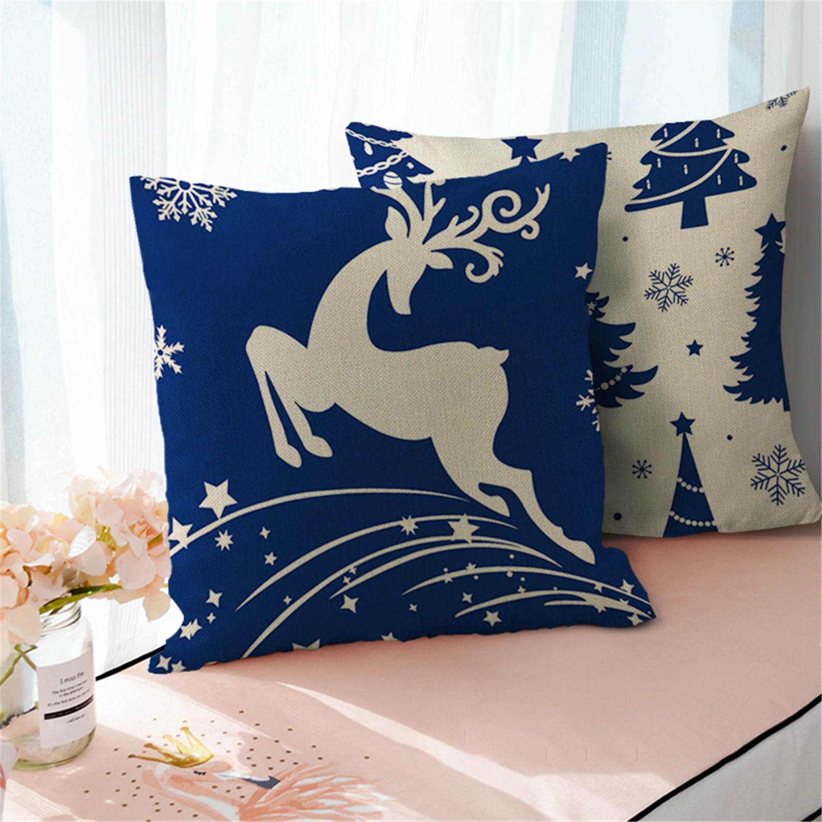 Рождественская Подушка Чехол декоративный диван снег Санта-Клаус чехол для подушки 45*45 см синяя Подушка Чехол для подушки наволочка домашний декор