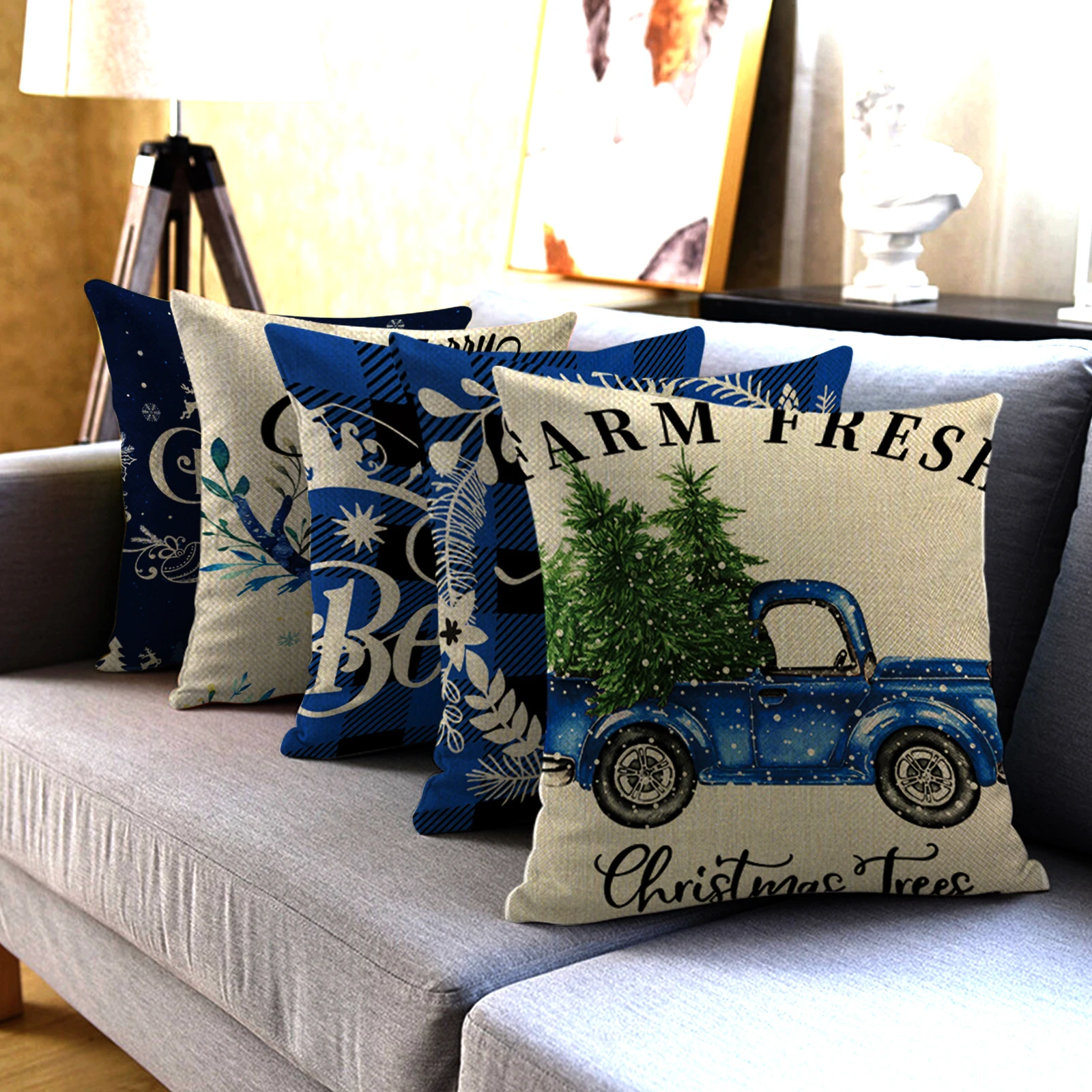 Рождественская елка, искусственная льняная наволочка, 45x45 см, син...
