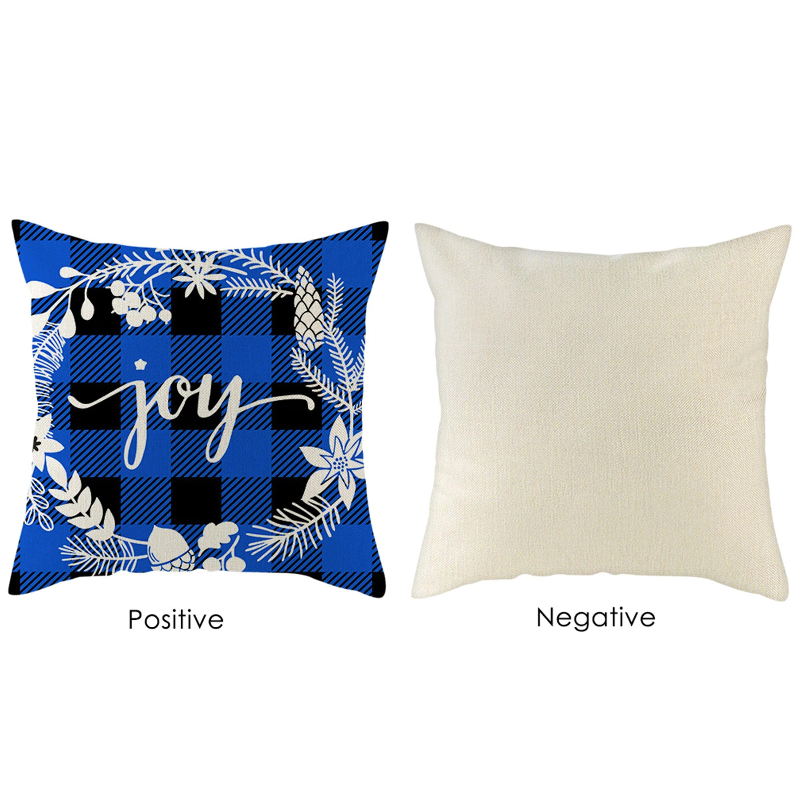 Рождественская наволочка в синюю клетку, арт-деко, льняная наволочк...