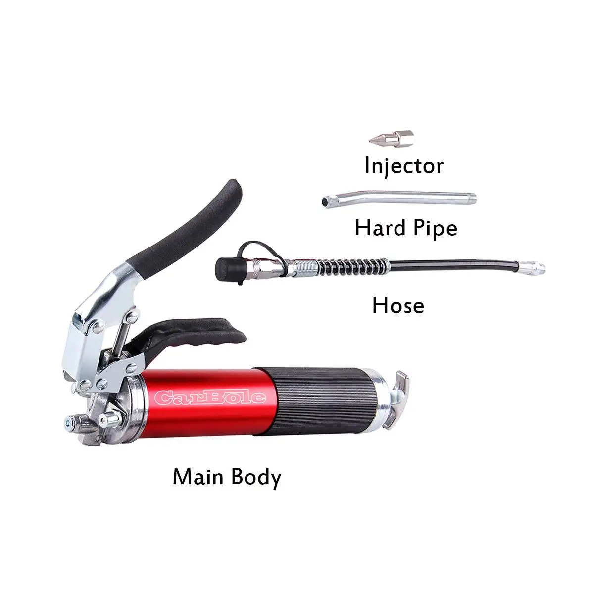 Упаковка включает в себя:1 * смазочный пистолет1 * хост1 * жесткая труба1 * инжектор