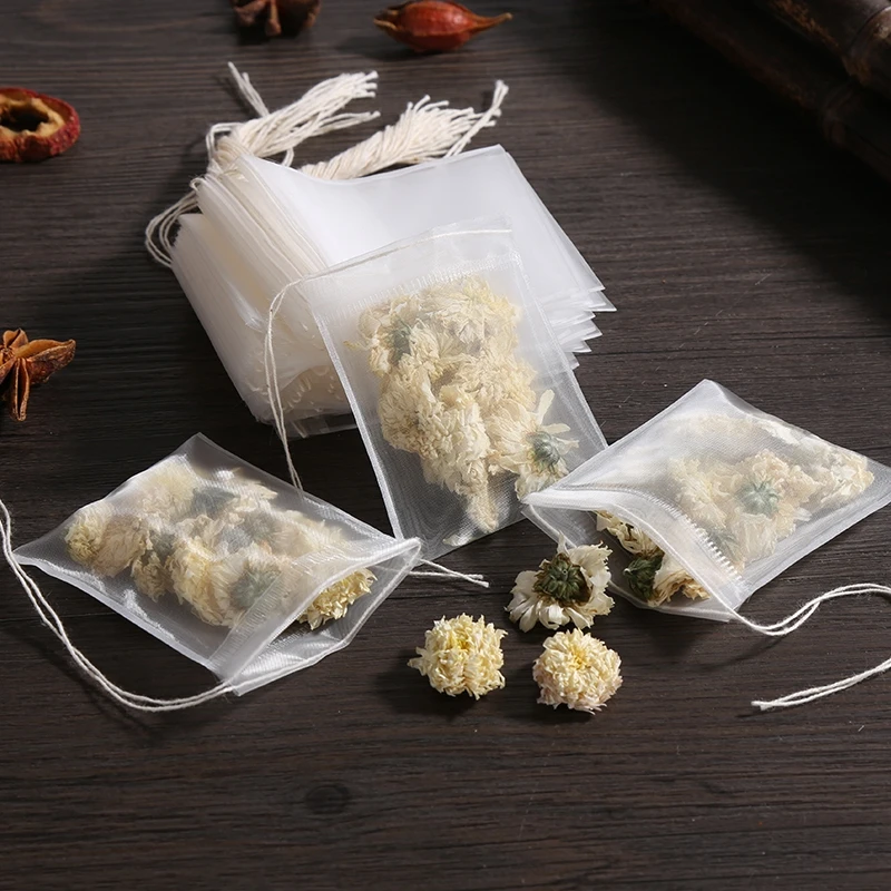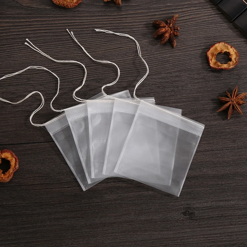 Прозрачные нейлоновые чайные пакетики, пустые чайные пакетики, одноразовые нейлоновые чайные пакетики со шнурком, запаянный фильтр, пакетик для специй, похожий на чай
