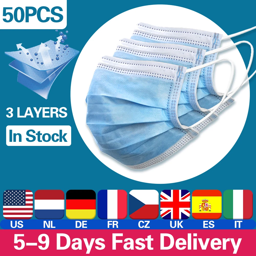 50 шт. маска одноразовая маска для лица, Китай ткали 3 Слои слоев ф...