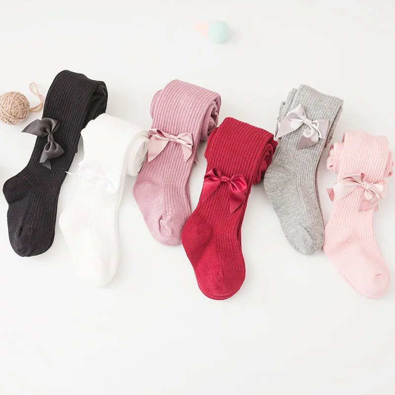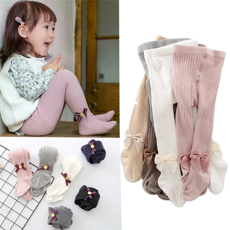 Зимние милые детские колготки От 0 до 8 лет, хлопковые облегающие колготки для девочек, весенне-осенние трикотажные колготки с бантом для детей младенцев