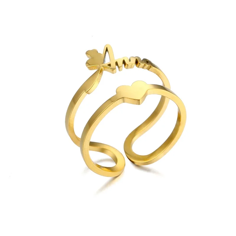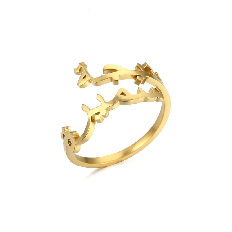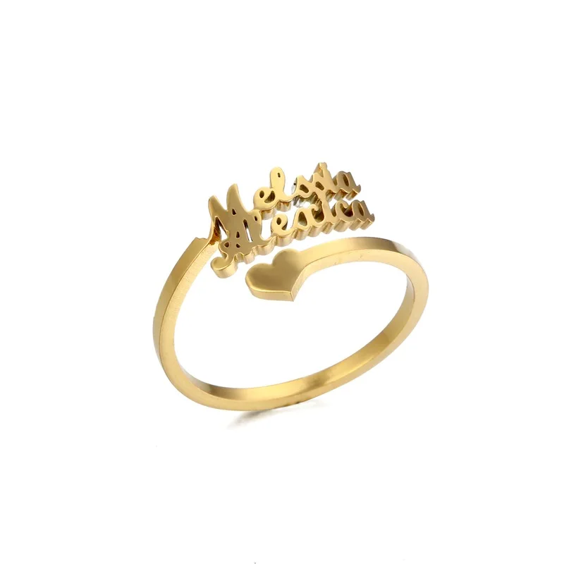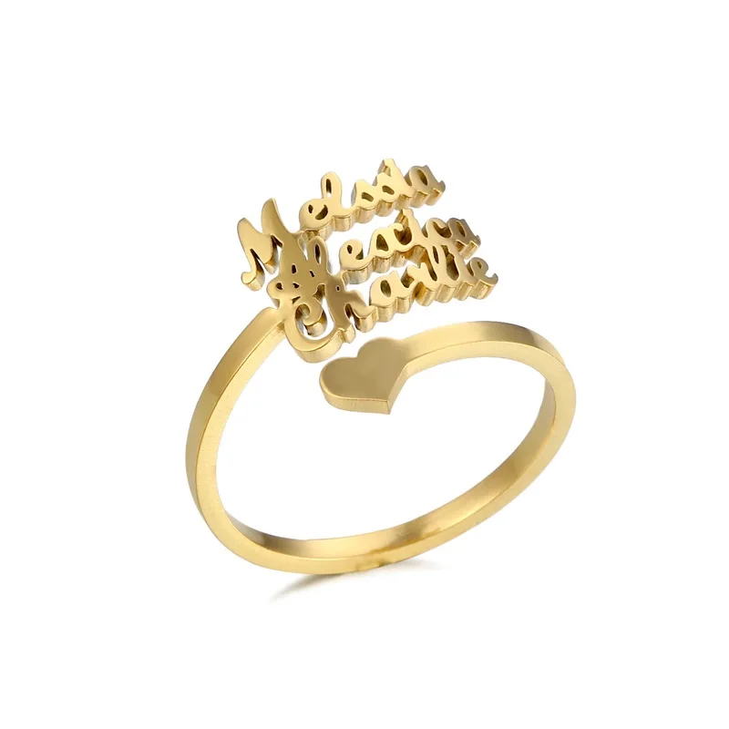 Кольцо с двойным именем для мужчин и женщин, индивидуальное ювелирное изделие из нержавеющей стали, регулируемое, для пар, в подарок