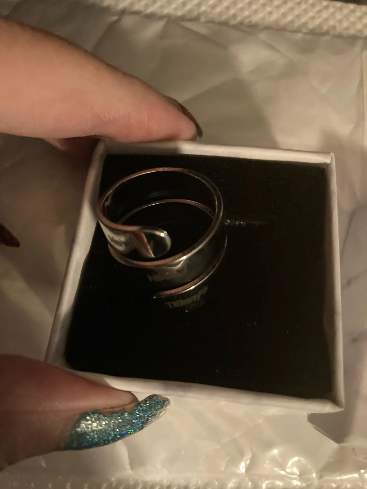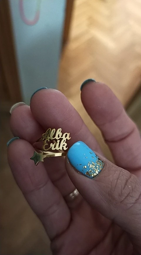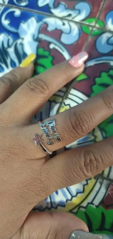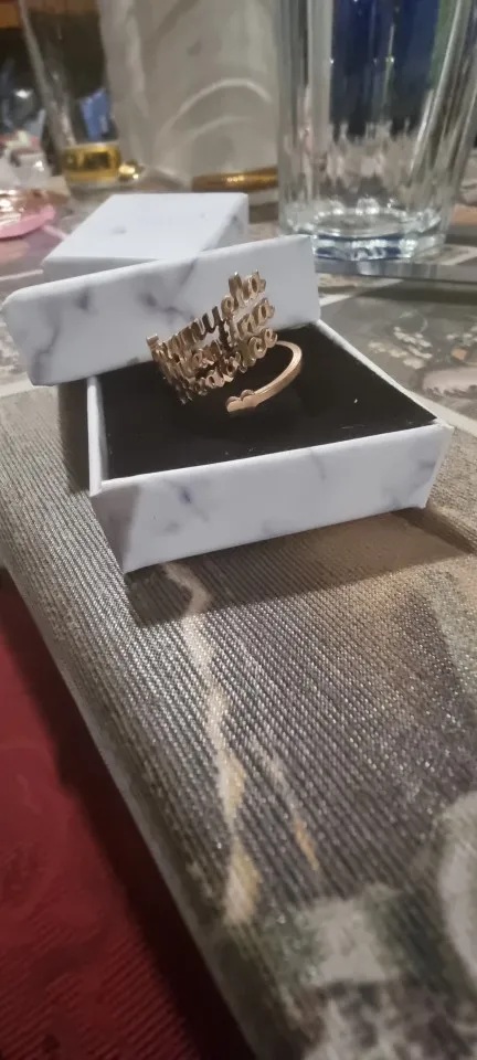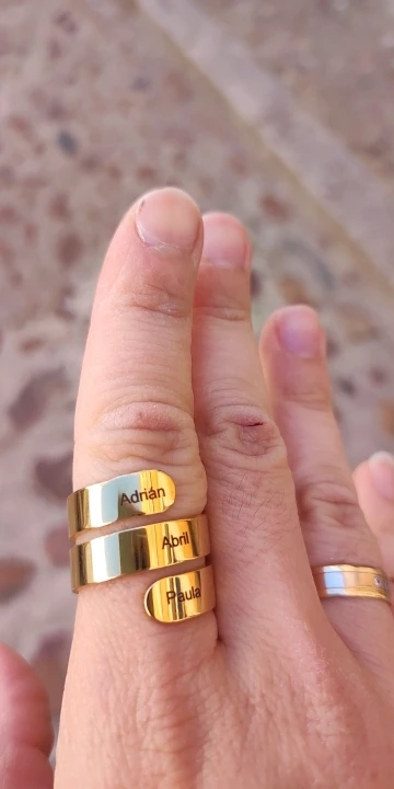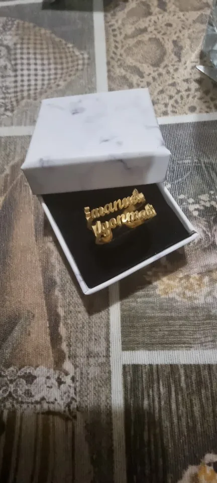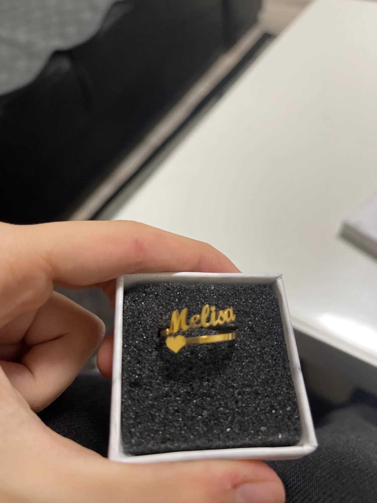 Хорошо получил кольцо до запланированной даты, это очень красиво. Я просто надеюсь, что имя не оторвется от кольца, потому что фиксация в порядке, и я боюсь, что это не имеет... Я все еще ставлю хороший рейтинг продавцу, потому что он очень красивый, и я со временем увижу, если кольцо твердое. Я бы вернулся, чтобы поставить второй комментарий, чтобы подтвердить, если он очень твердый или нет... Спасибо продавцу.