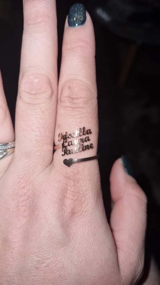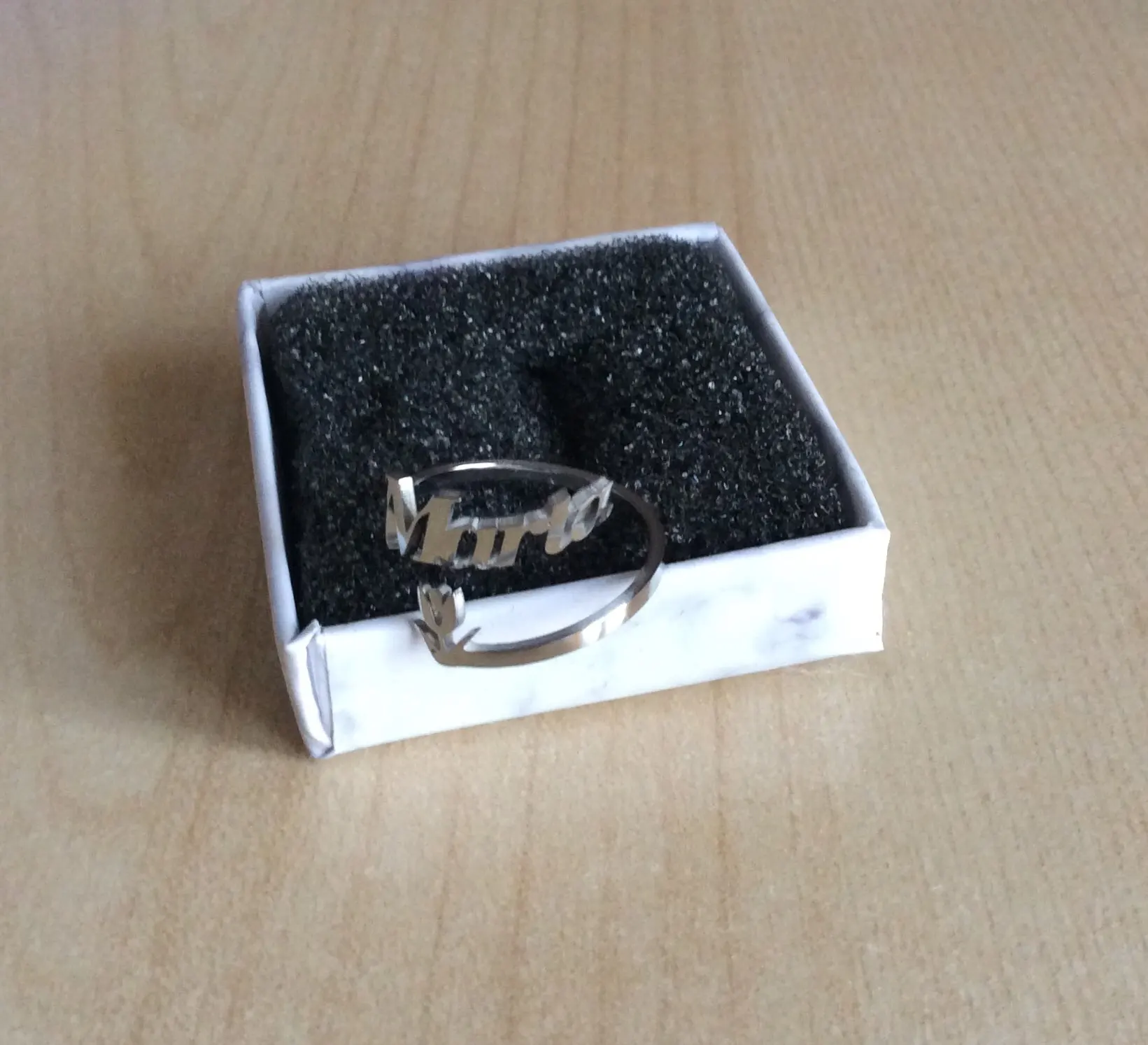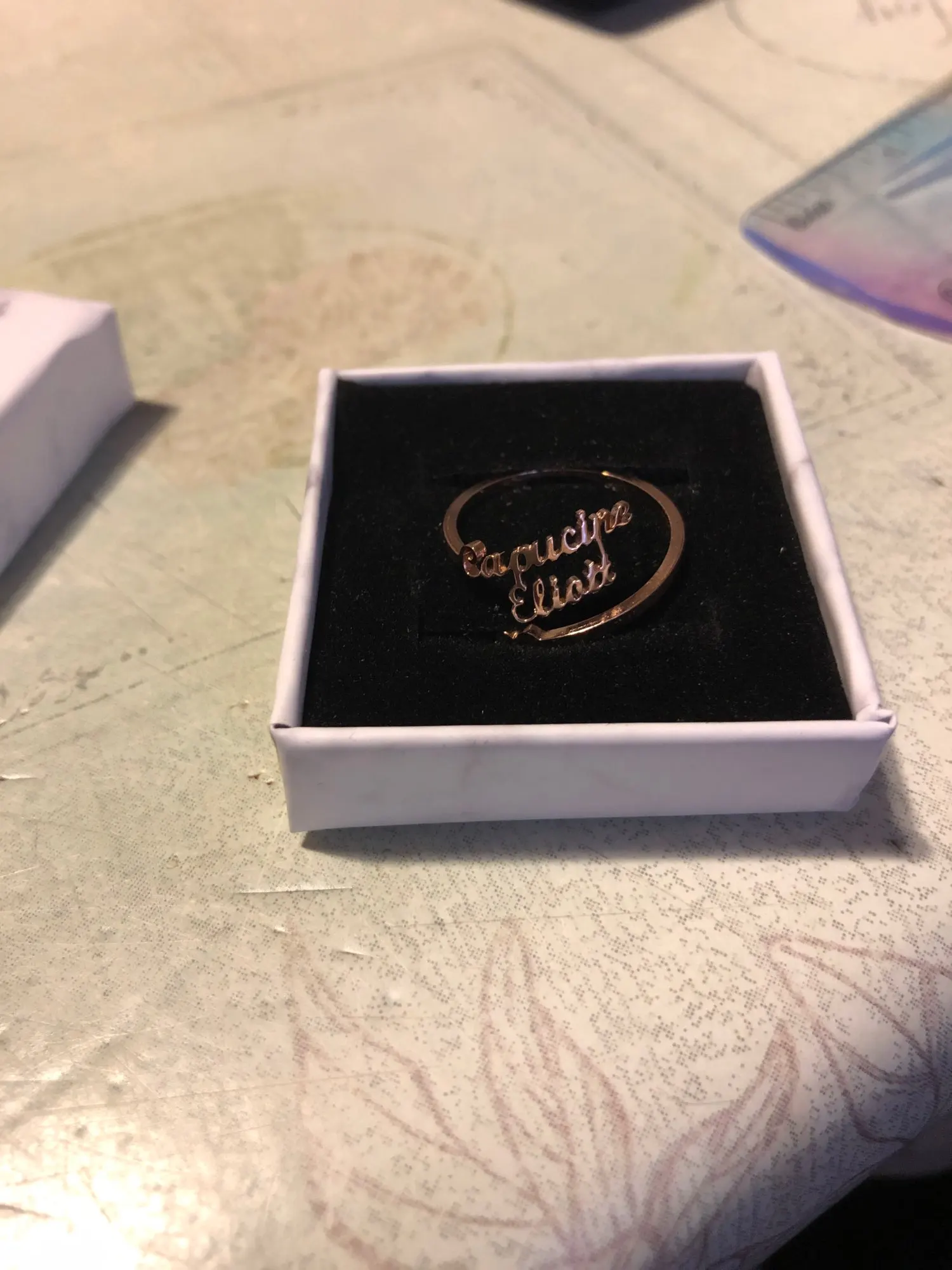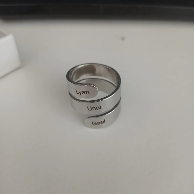 Красивое кольцо, имена очень хорошо выгравированы, а кольцо так красиво. Спасибо, спасибо.