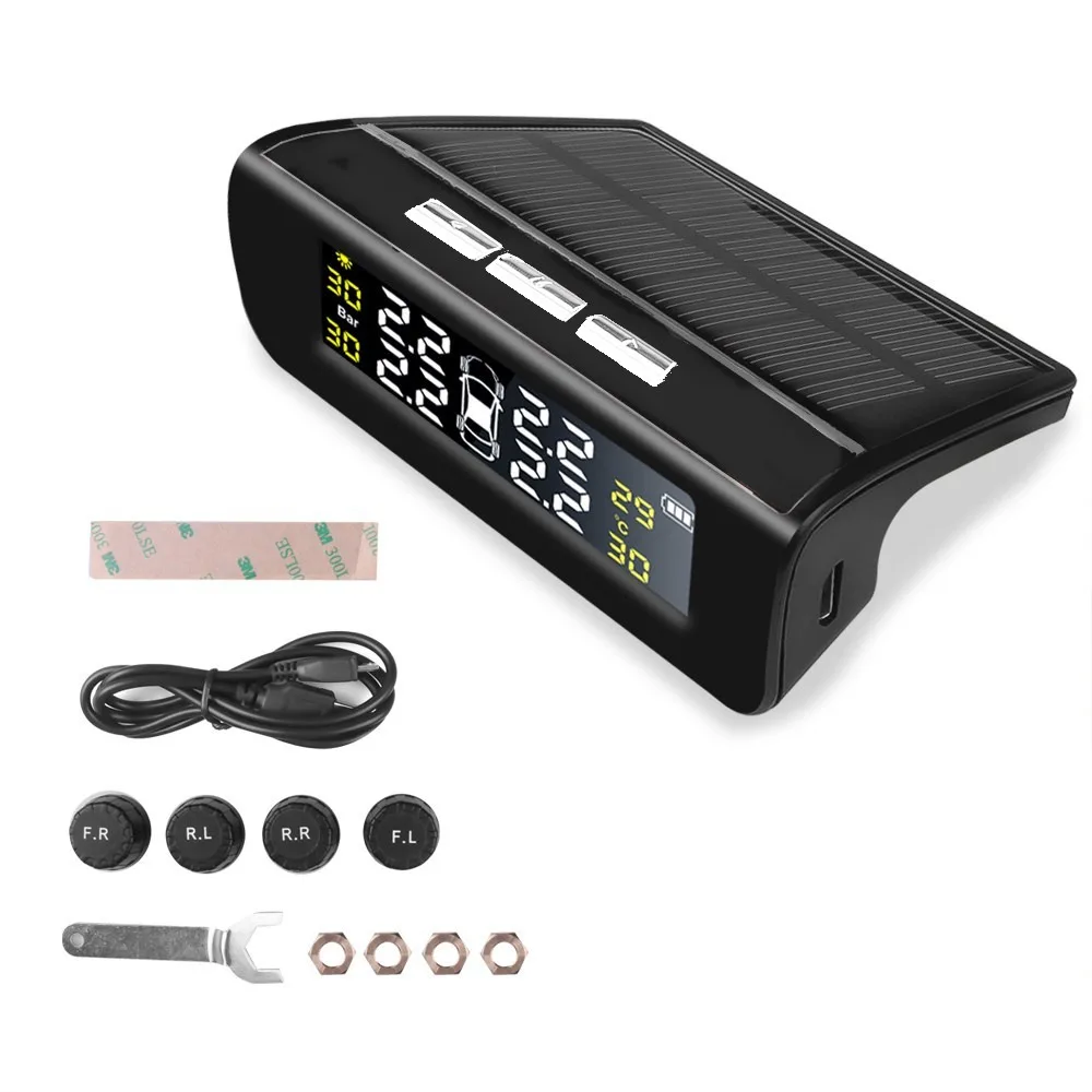Умная автомобильная система контроля давления в шинах на солнечных батареях, система контроля давления в шинах TPMS, предупреждение о безопасности в шинах, предупреждение о высокой температуре, внешние датчики