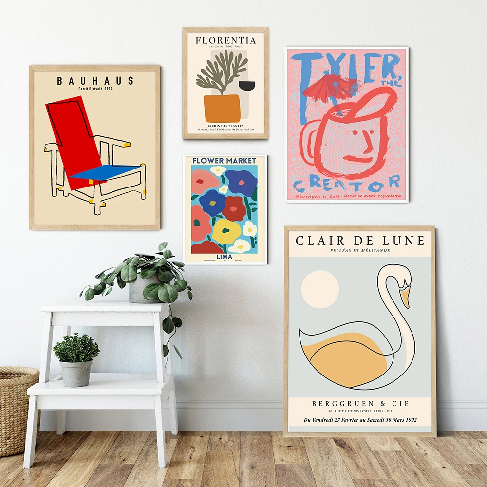 Скандинавский постер, абстрактная выставка, холст, стул, настенное искусство, минималистичный принт, картина с изображением лица, современный декор для гостиной