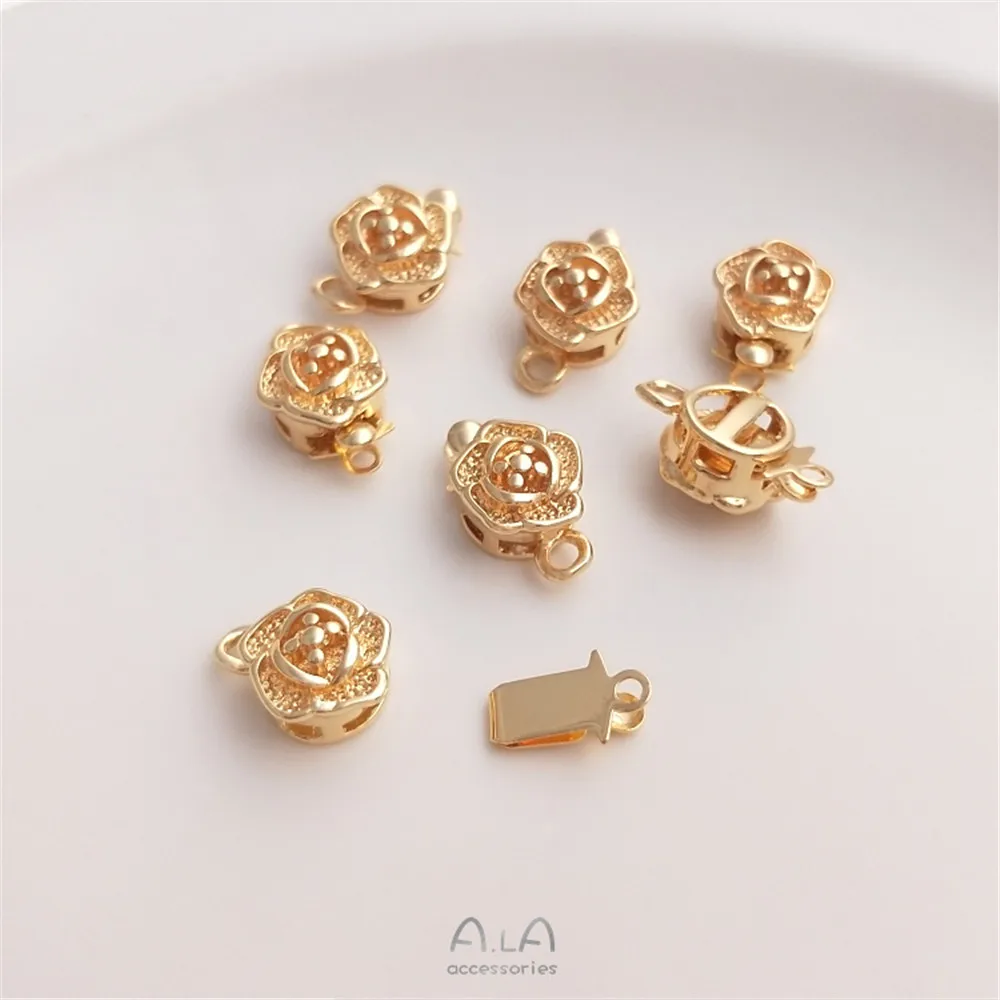 14K позолоченная Роза вставка Пряжка ручной работы сделай сам Хрустальное жемчужное ожерелье Соединительная Пряжка ювелирные аксессуары