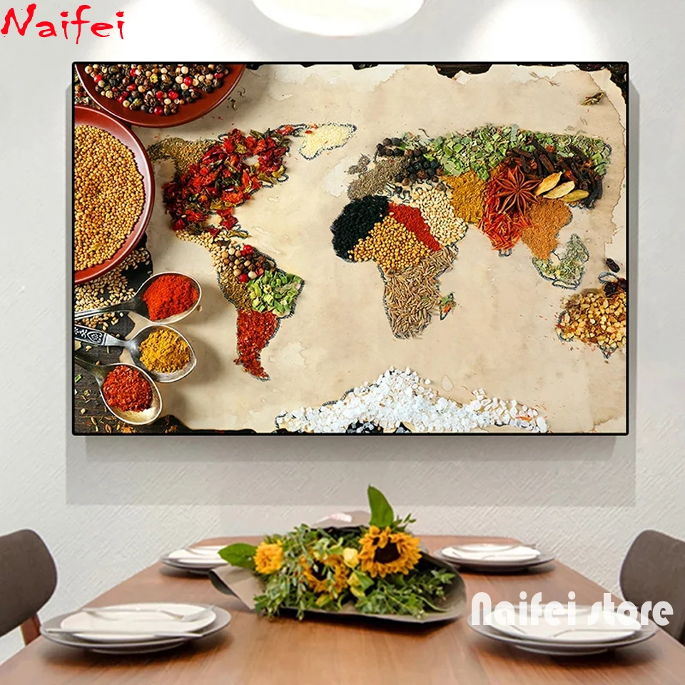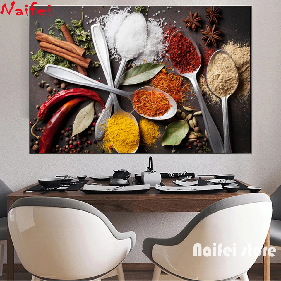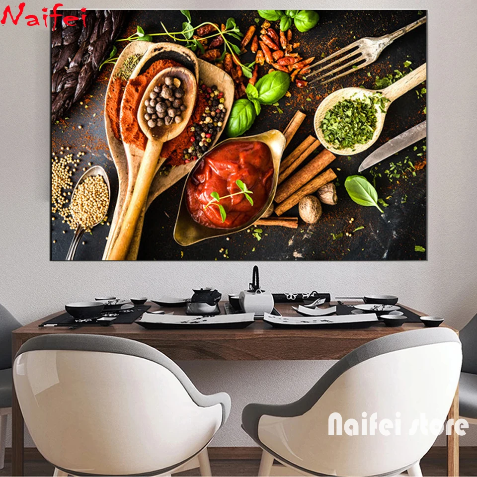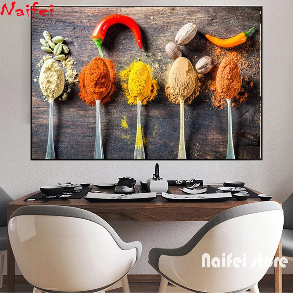 5D Diy алмазная живопись зерна ложка для специй карта Алмазная вышивка еда современное настенное искусство рукоделие кухонный декор для столовой