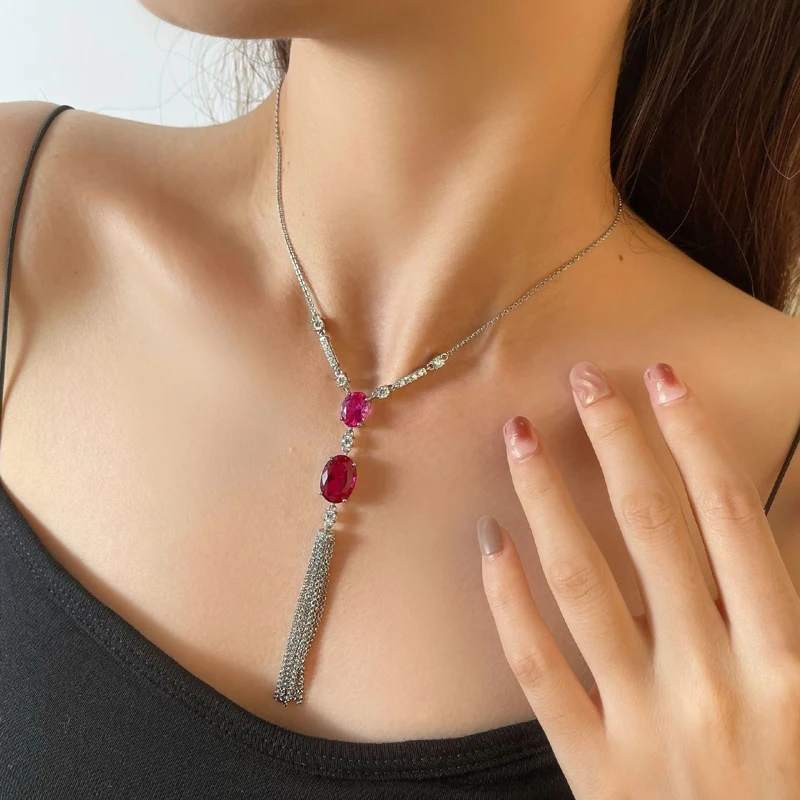 10*14 мм рубиновое ожерелье в форме яйца 100%-S925 Стерлинговое Серебро ювелирные украшения свадебный подарок на день рождения