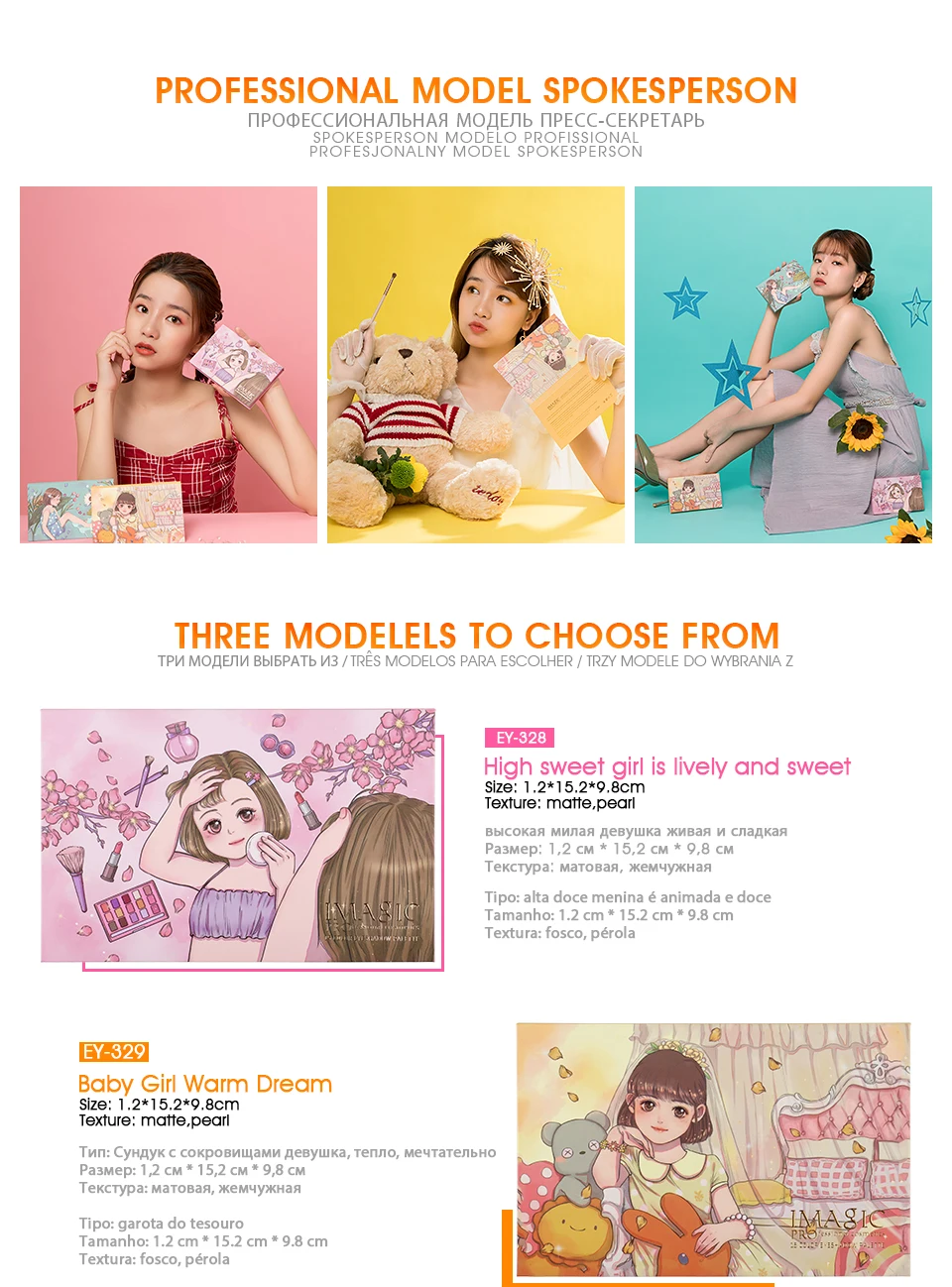 Бренд IMAGIC nieuwe collectie "MEISJE" 15-kleur oogschaduw palet drie verschillende thema kleuren. ---- Детство