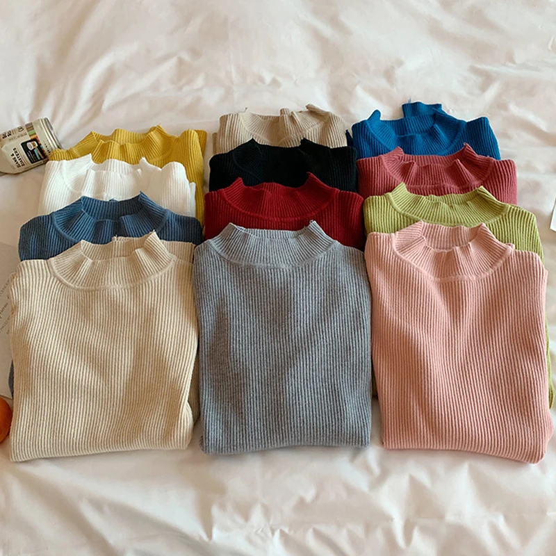 Свитер женский трикотажный, матовый, синий, с длинным рукавом