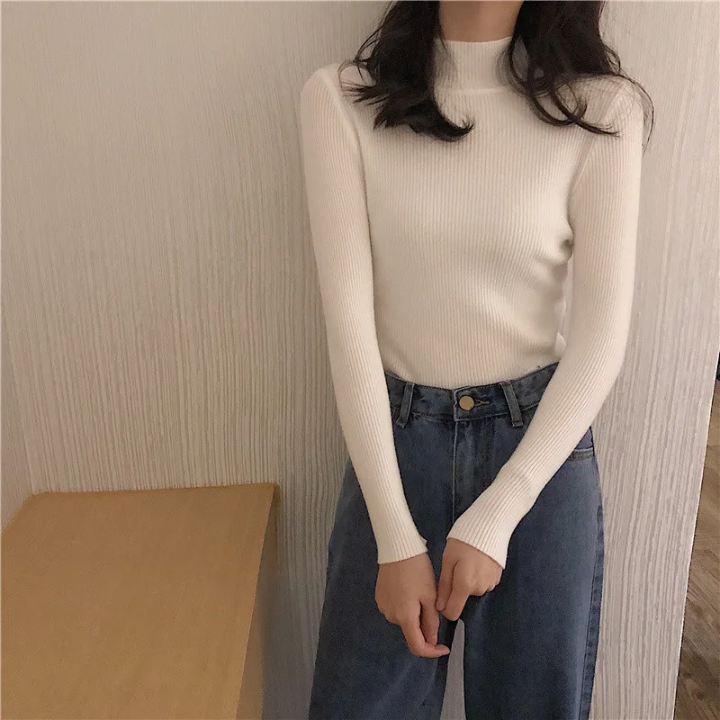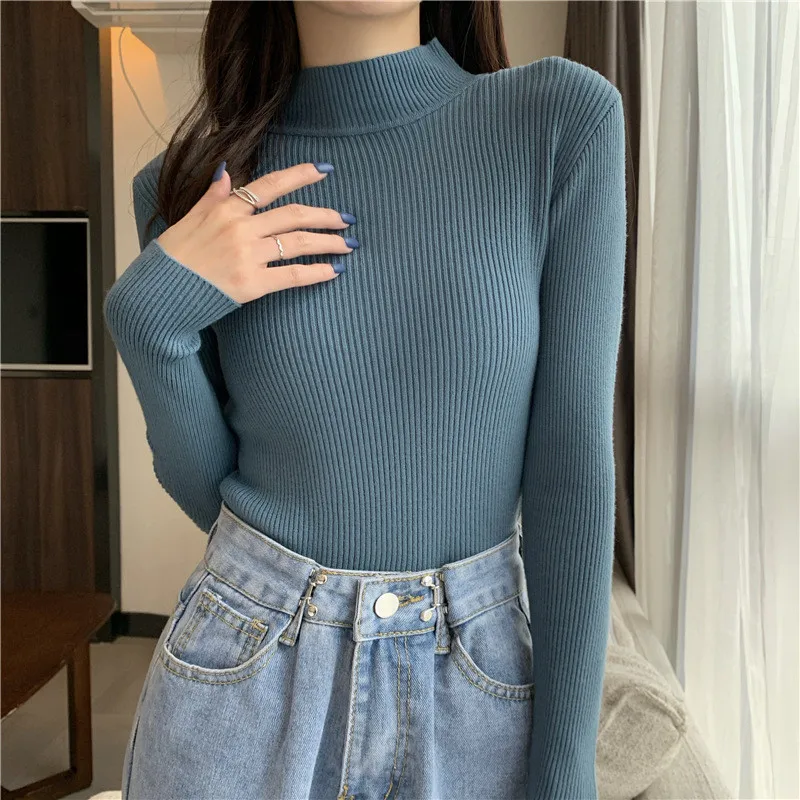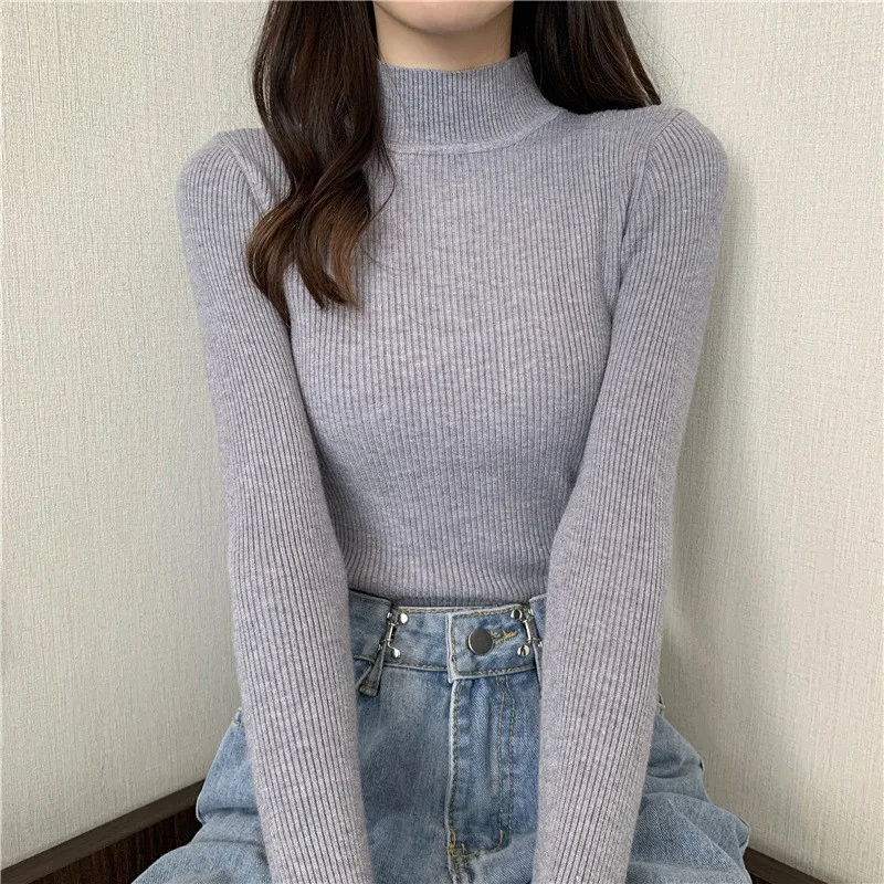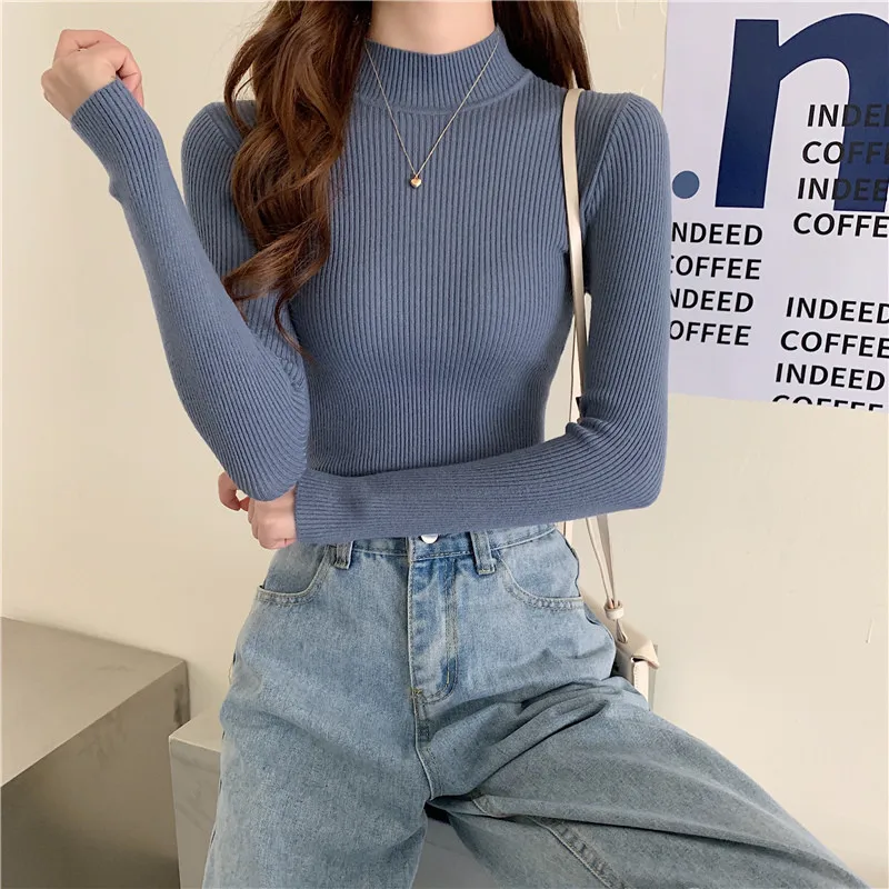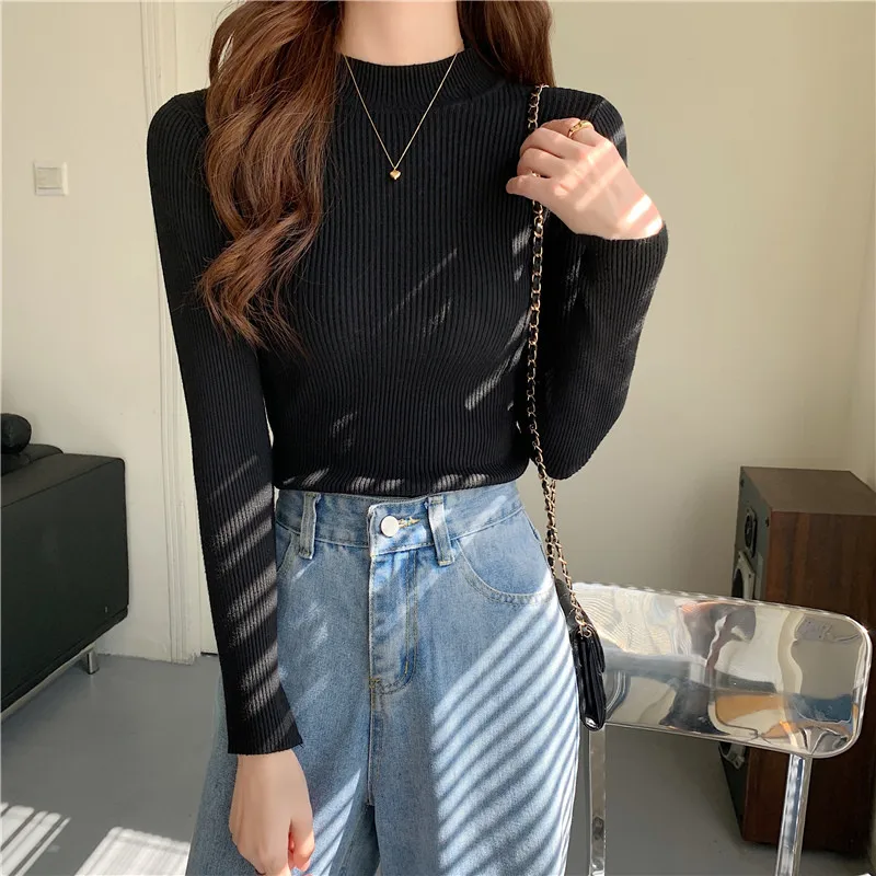 Демисезонные пуловеры с высоким воротником, свитера, Базовые Женски...