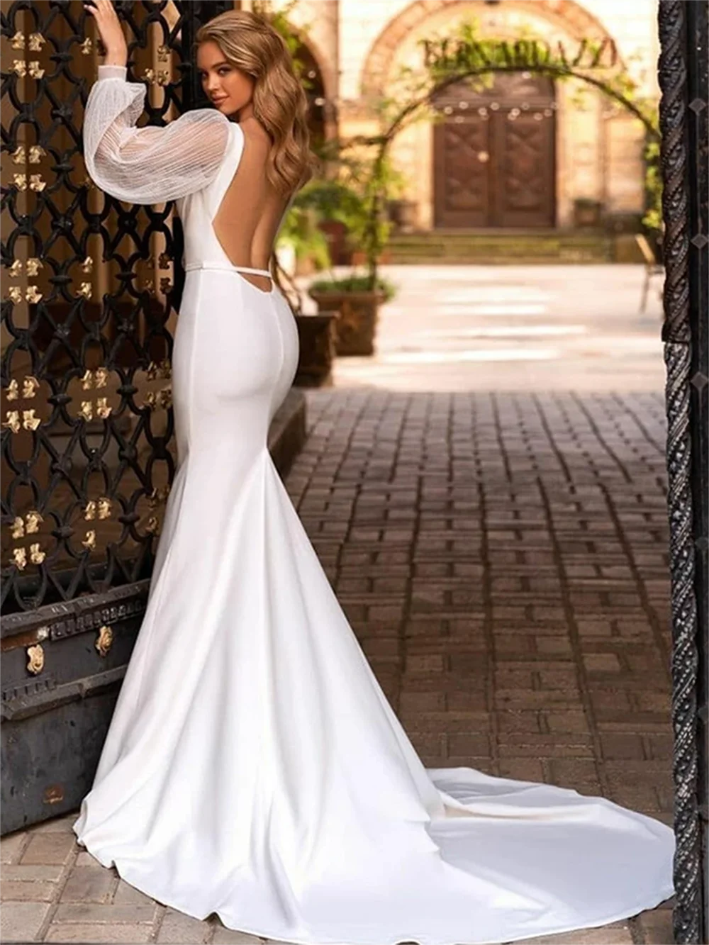 Соблазнительные Свадебные платья-русалки 2021, элегантный атласный корсет с открытой спиной, официальное платье с длинным рукавом, свадебное платье на заказ