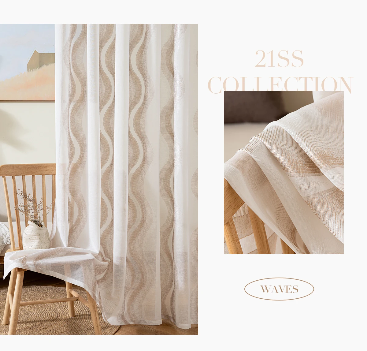 Бежевые тюлевые шторы с геометрическим рисунком для гостиной, совре...