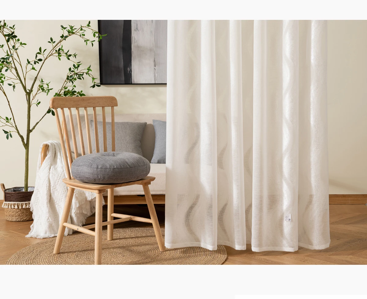 Белые геометрические оконные тюлевые шторы для гостиной, современны...