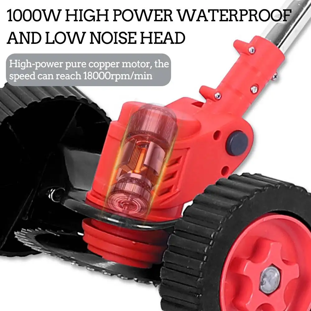 Беспроводной электрический триммер для травы, 21 в, мощная газонокосилка, с двойным колесом, регулируемая длина, садовые обрезные инструменты с батареей