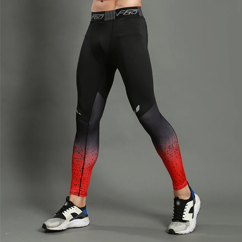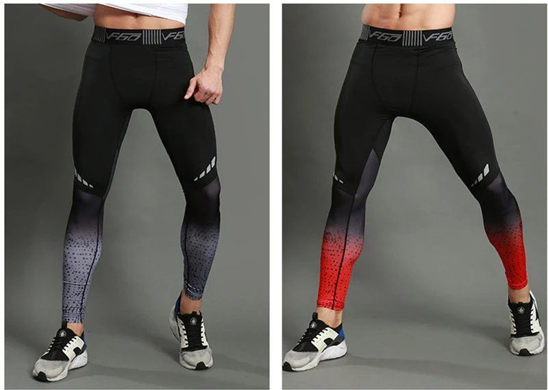 Мужская спортивная одежда градиентного цвета, быстросохнущие дышащие облегающие спортивные штаны для спортзала и бега, Компрессионные Мужские Леггинсы для бега