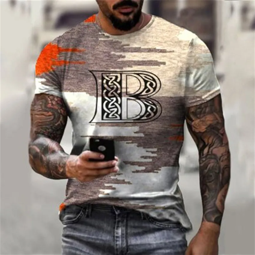 Мужская футболка с монограммой, летняя повседневная футболка в стил...