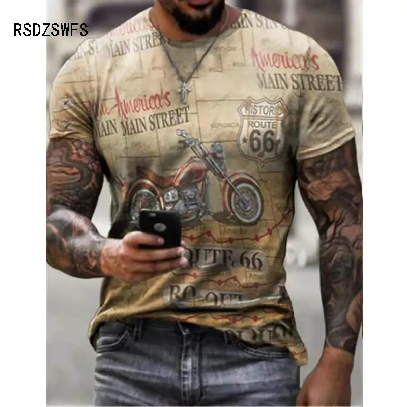 Футболка мужская с принтом на заказ, уличная мода, шоссе 66, 3D фут...