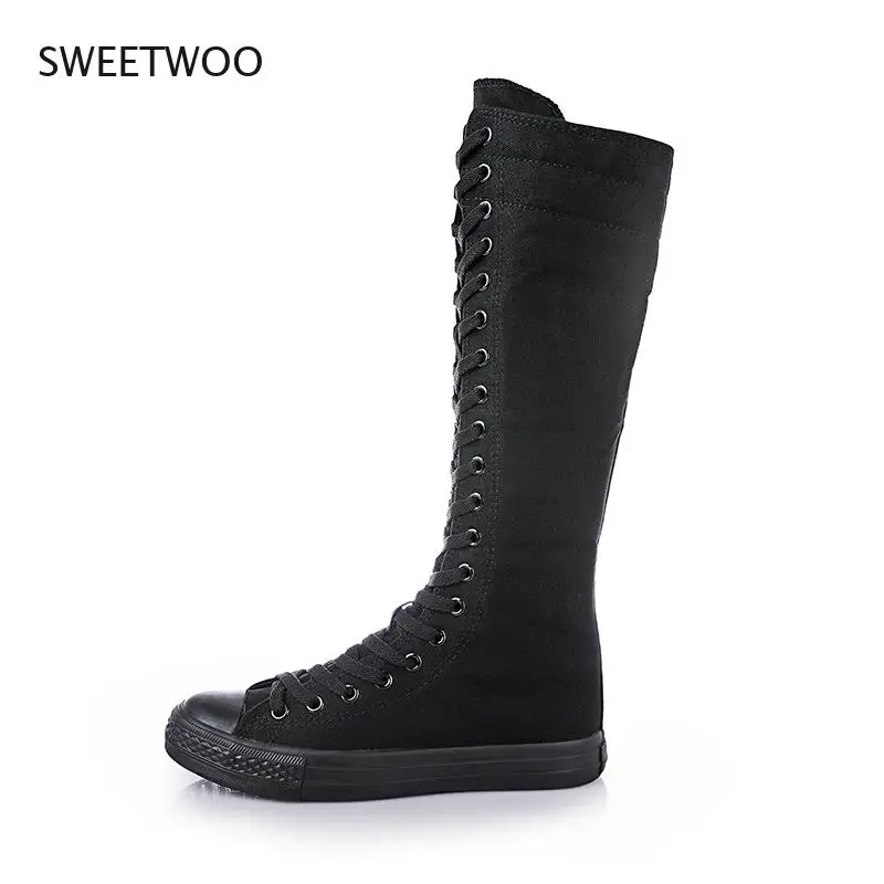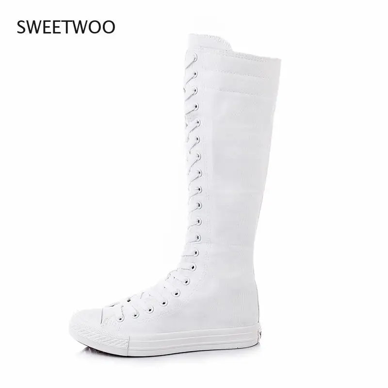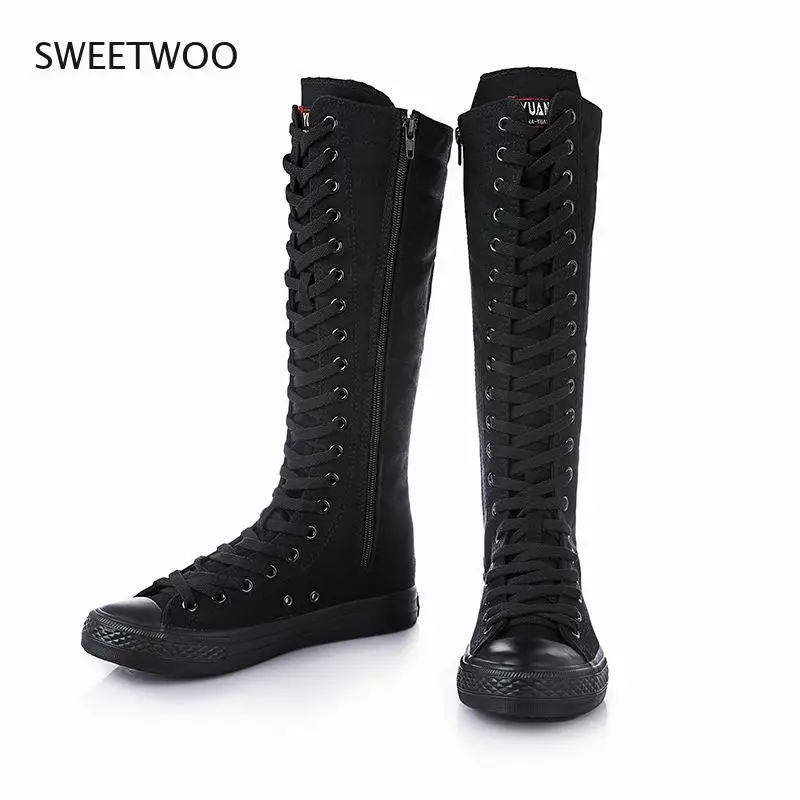 Новинка 2021, женские парусиновые ботинки, длинные ботинки на молнии, обувь на плоской подошве, Повседневные Удобные ботинки на шнуровке и молнии