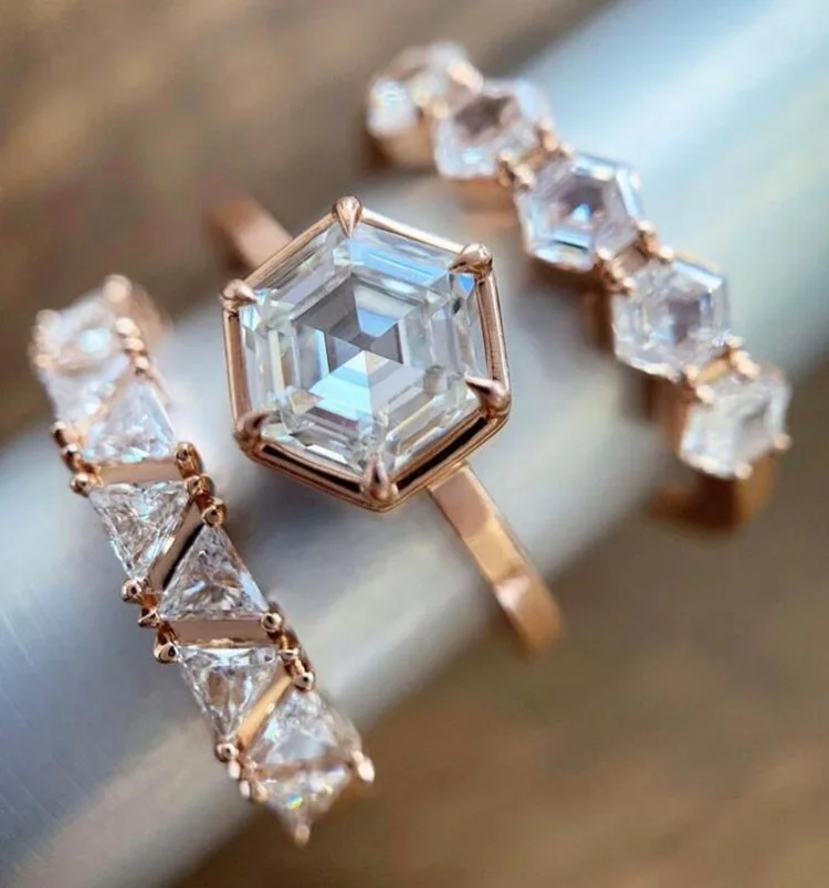 Коллекция из 3 шт.! Комплект женских колец с фианитом и кристаллами