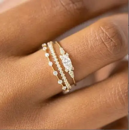 Коллекция простых колец 3 шт.компл. Комплект женских колец с циркон...