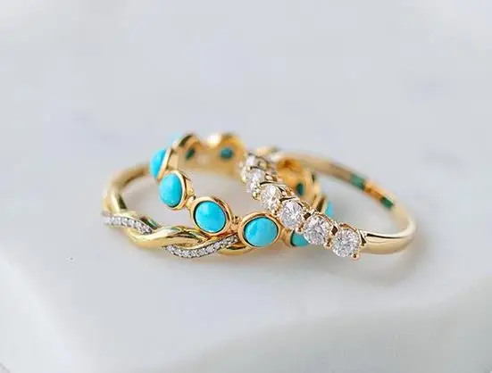 Набор женских круглых колец, 2 шт.компл., с белыми кристаллами цирк...
