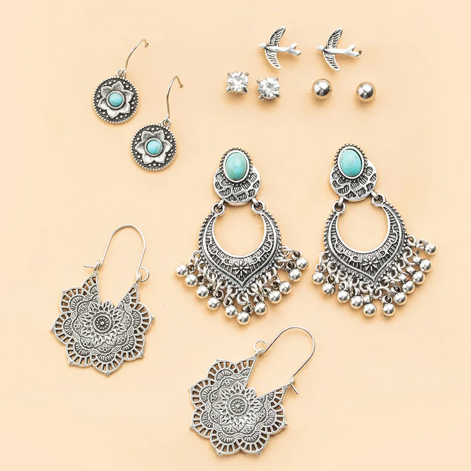 Винтажные этнические Бохо Золотые Серебряные Цветные Наборы Серьги для Женщин Девочек Большие Круглые Геометрические Массивные Серьги Набор Ювелирных Изделий Подарки Свадебная Вечеринка Оптовая Дропшиппинг
