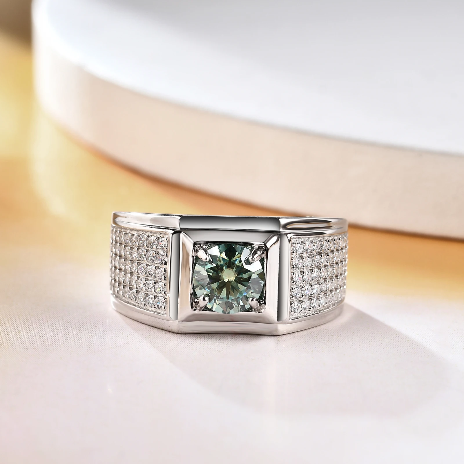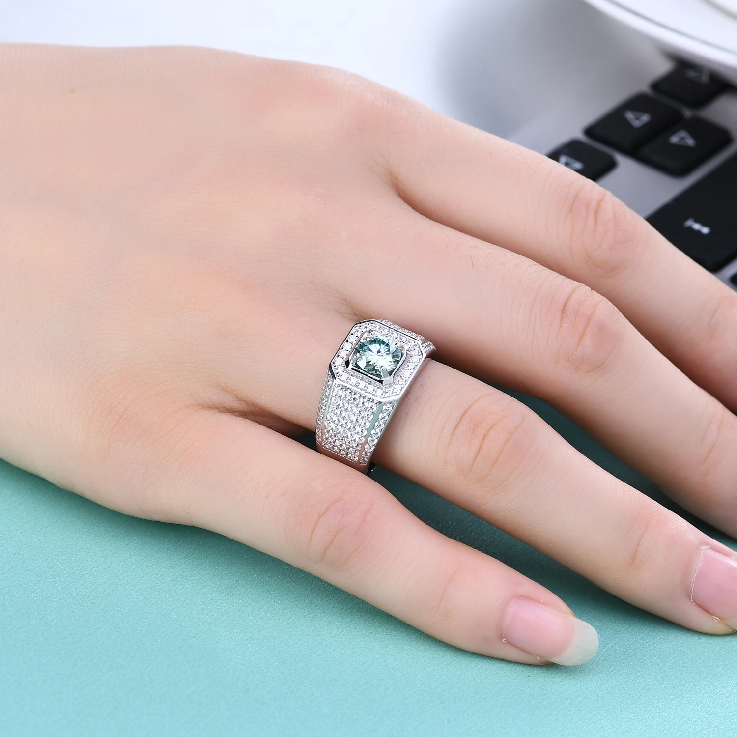 Кольцо мужское из серебра 925 пробы, 1 карат, с муассанитом зеленог...