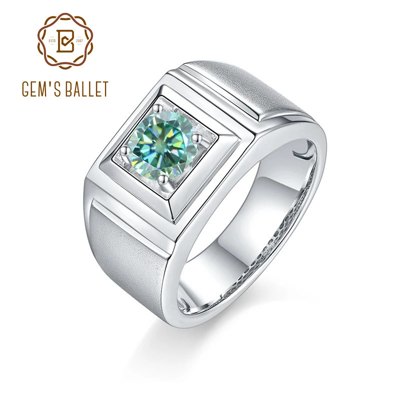 GEM'S BALLET 6,5 мм карат зеленый Муассанит, мужское кольцо, брилли...