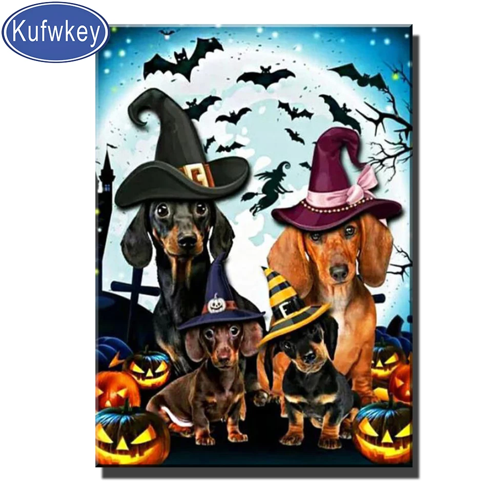 Алмазная мозаика сделай сам, шапка такса, тыква, 5D, сделай сам, квадратнаяфотосессия, подарок на Хэллоуин