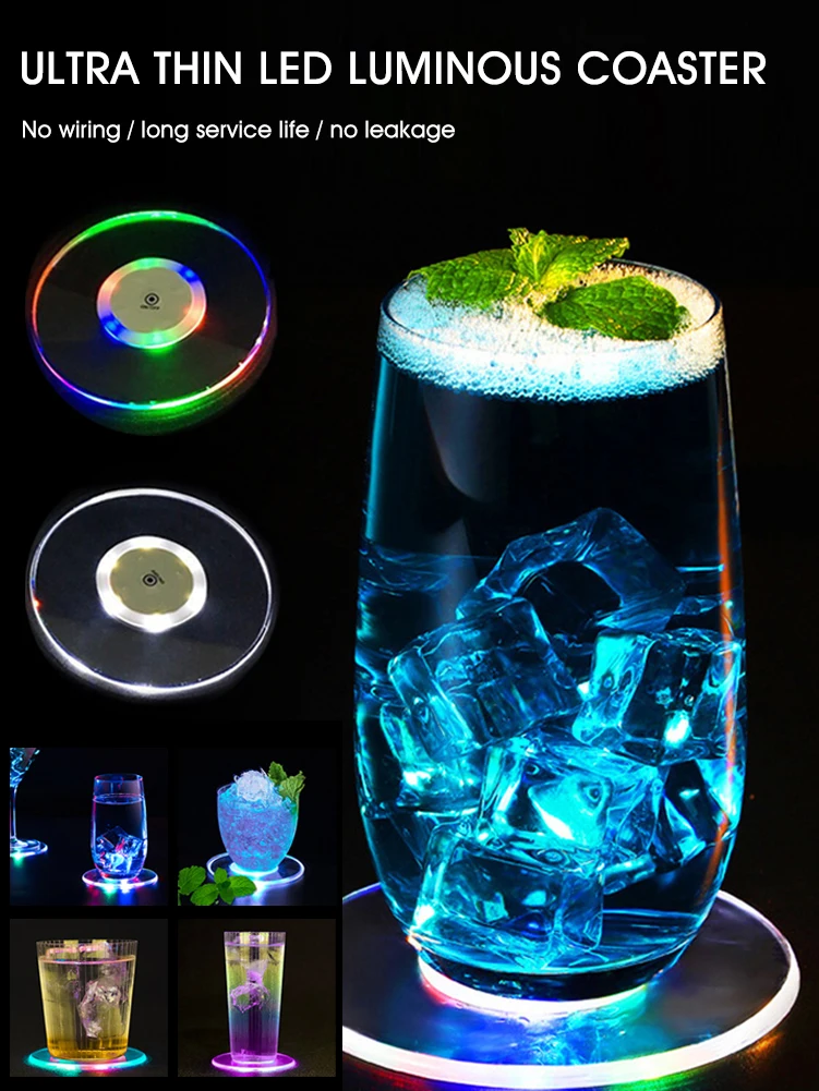 Светодиодный ная Подставка под кружку, подставка под кружку, акриловая панель, яркая, без запаха, для дома, бара вечерние НКИ