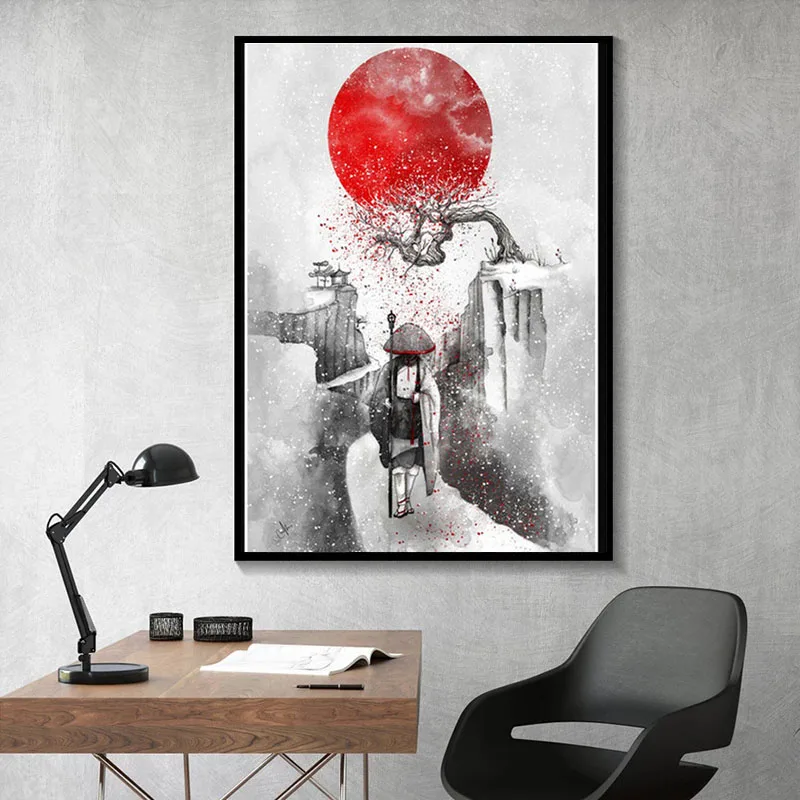 Печать плаката Горячие японские Zen Ink Bonsa Bushido Samurai Kanji...