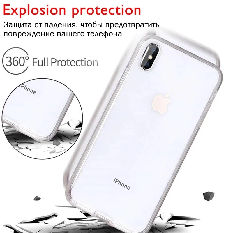 360, двойной силиконовый прозрачный мягкий чехол для IPhone 13, 12, 11 Pro, XR, XS Max, защитный чехол на весь корпус IPhone 6, 6S, 7, 8 Plus, SE 2020