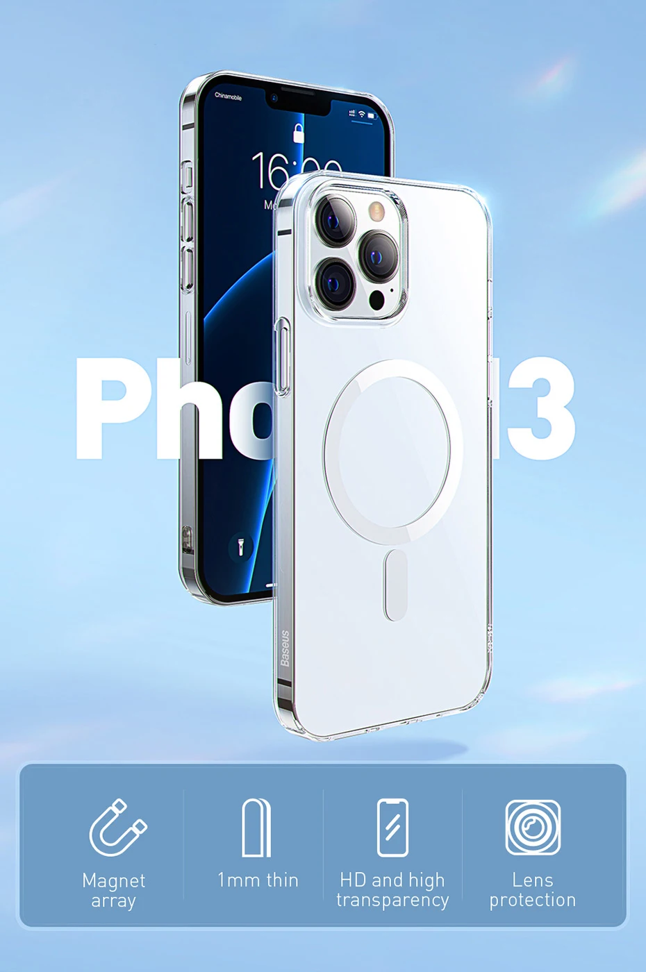 Прозрачный Магнитный чехол Baseus для телефона iPhone 13 Pro Max 13 Pro, чехол с беспроводной зарядкой для iPhone 12, 12 Pro Max, Магнитный чехол