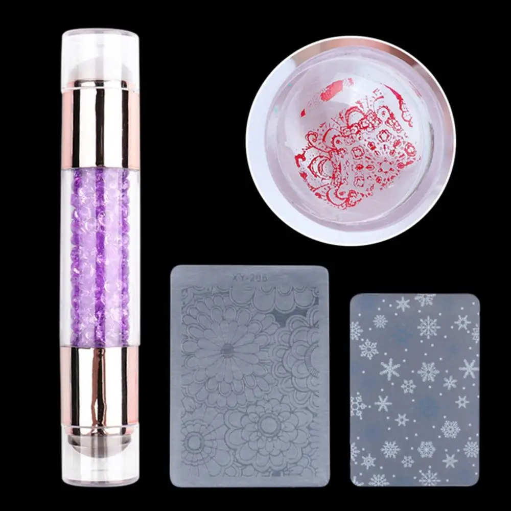 Двусторонний штамп для ногтей набор штампов Желейный силиконовый штамп Хрустальная ручка штамп для дизайна ногтей инструменты для трафарета