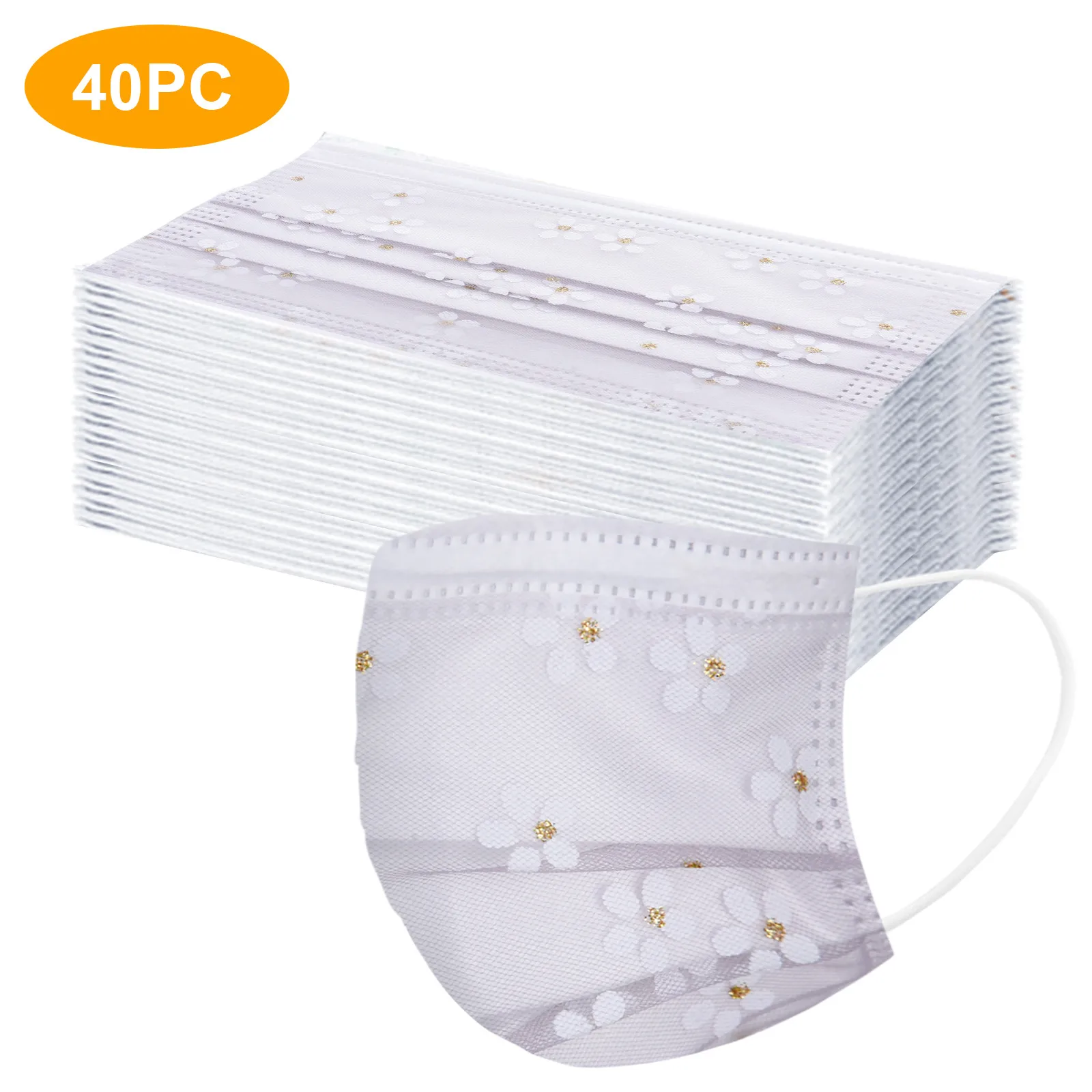 Маска с цветочным принтом утолщенная 4-слойная Нетканая маска для взрослых из сетчатой пряжи маска для лица одноразовая Защитная маска для вечерние косплей маска