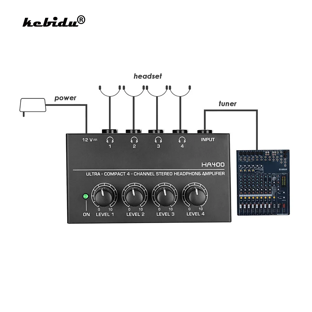 Kebidu новейший HA400 аудио усилитель ультра-компактный 4 канала мини o стерео усилитель для наушников с адаптером питания для записи музыки миксер горячая распродажа