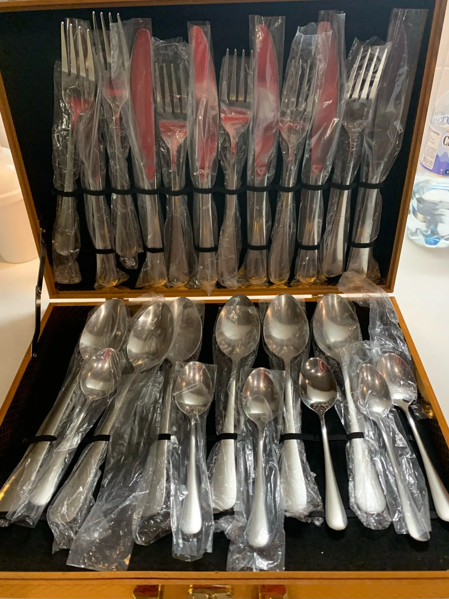 Очень долго отправляли (10 дней) в общей сложности ждала посылку 20 дней. Симпатичный повседневный набор. Очень удобный размер всех предметов. Каждый прибор в отдельной упаковке. Из минусов: на всех вилках с одной стороны зазубрины . Кроме того, практически на всех предметах сколы. Они малозаметные, так что за 1500 за такой набор очень здорово. Рекомендую!