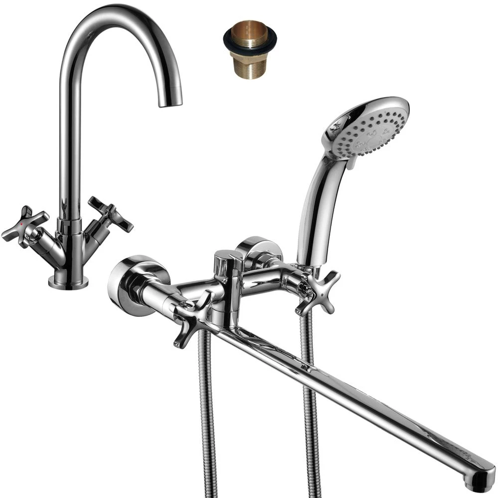 Коллекция: RS39Тип: комплект смесителейНазначение: для ванны, для раковины, универсальныйВстроенные системы: нетТип управления: двухвентильноеТип дивертора: поворотныйТип монтажа: на стену, на раковинуМеханизм: керамическая кран-буксаМатериал корпуса: латуньМеханизм скрытого монтажа: не предусмотренВ комплекте с душем (лейкой): с душемДержатель лейки: на смесителеДлина шланга: 150 смКоличество режимов душевой лейки: 3 режимаПереключатель режимов лейки: поворотныйТип излива: поворотныйДлина излива: 350 ммРазмер излива: длинныйКаскадный излив: нетКоличество монтажных отверстий: 2Стиль: современный стиль (Hi-Tech)Поверхность: глянцеваяЦвет: хромЦвет производителя: хромСтрана происхождения бренда: КитайСостав поставки: смеситель для ванны, смеситель для раковины, ручной душ, шланг, эксцентрики, декоративные отражатели, инструкция.